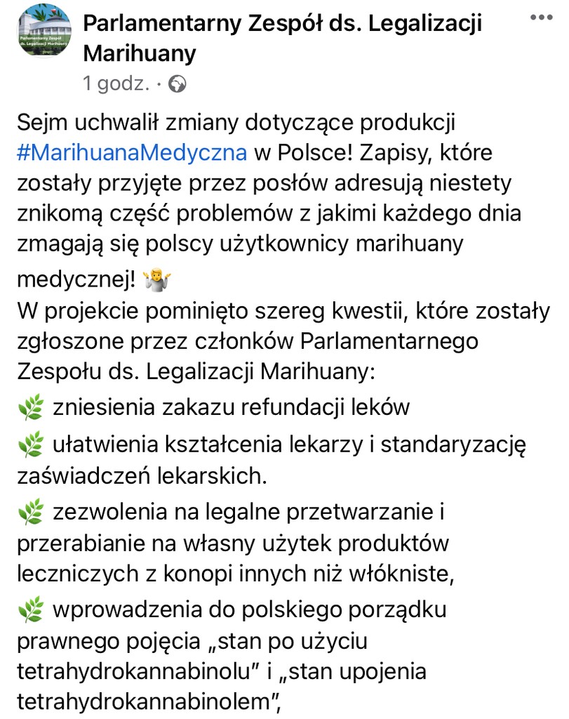 Będziemy monitorować wdrażanie tej ustawy oraz przygotowanie Instytutu do produkcji suszu. Zobaczymy w jaki sposób nowe zapisy przełożą się na realia i czy polscy pacjenci skorzystają na tej zmianie. Niestety w projekcie pominięto wiele istotnych kwestii, które przyczyniłyby się do rozwoju branży oraz wsparłyby pacjentów konopnych. Nie wprowadzono przede wszystkim refundacji suszu, a w dalszym ciągu nie wiadomo jaka będzie ostateczna cena leków
